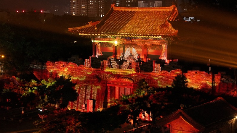 每日14時30分,活動特邀來自肥城夢幻桃花源的專業(yè)演職團隊帶來專場文藝演出。當(dāng)夜幕降臨,18時30至21時(每半小時一場),岱廟北城墻將變身“巨型光影幕布”,上演燈光秀表演。光影流轉(zhuǎn)間,千年歷史與現(xiàn)代科技碰撞融合,讓游客在光影變幻中直觀感受泰山文化的厚重底蘊與魅力。